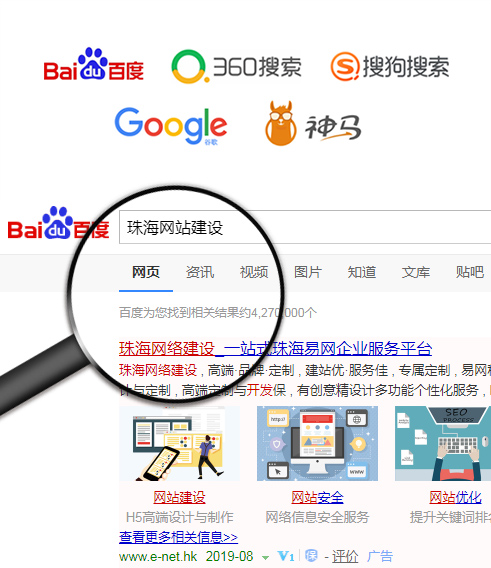 了解更多 ● 讓企業官網在千億搜索結果中脫穎而出 ● 實現搜索企業和產品展示在搜索引擎 首頁 ● 3個月內有3-6個關鍵詞進入搜索引擎 首頁