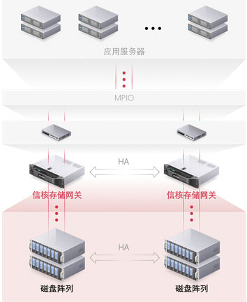 信核存儲級高可用解決方案是 家從網絡層實現存儲高可用的解決方案。通過存儲專用SAN網絡傳輸數據,不經過前端應用網絡,不影響業務的正常運行。